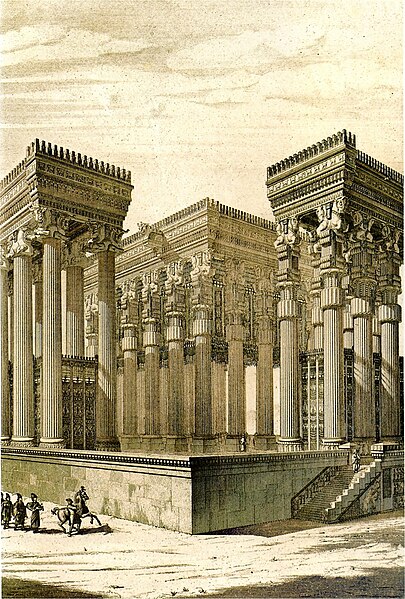 The 17th century Spanish traveller Don García de Silva Figueroa appears to be the first person to realise that the site Iranians knew/know as چهل مناره Chehel Menāre ‘The Forty Minarets’ or تختِ جمشید takht-e Jamshid ‘Jamshid’s throne’ is actually Persepolis, the ceremonial capital of the Achaemenids mentioned in many Ancient Greek sources. The most common contemporary Persian name for the site (‘Jamshid’s throne’) is a bit of a misnomer, as there is no evidence that Jamshid, the mythical Persian king mentioned in the Shāhmnāme, had anything to do with Persepolis.