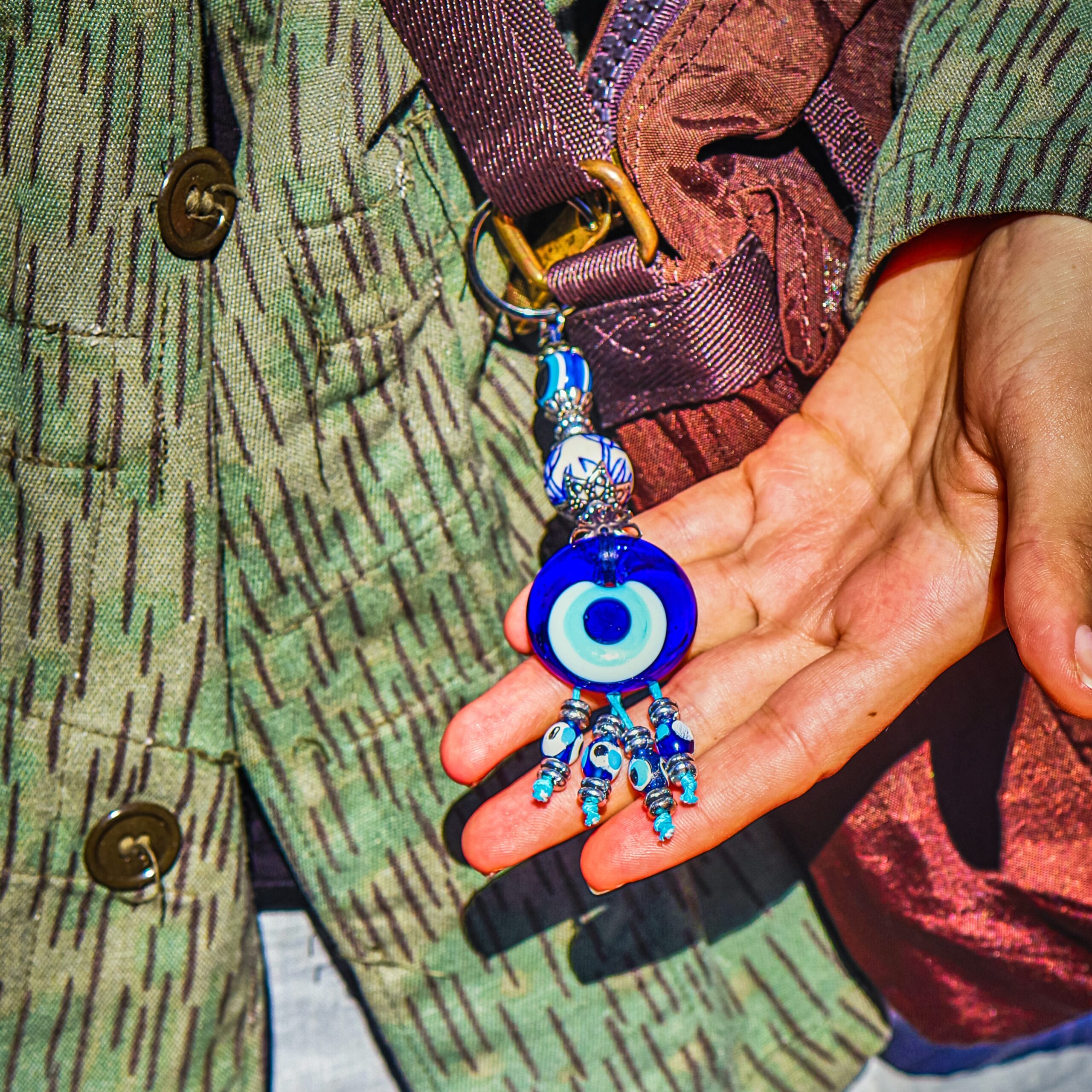 The eye has a special superstitious meaning, known as the ‘evil eye’ in English, or as the چشمِ بد cheshm-e bad, چشم زخم cheshm-zakhm, or the چشمِ حَسود cheshm-e hasud in Persian. In Afghan Persian it is also known as the چشمِ مُهره chashm-e mohra. The concept of the evil eye dates back thousands of years, and is based on the idea that a malevolent or envious glare towards an unsuspecting person can bring that person bad luck or a curse. The evil eye is a supernatural belief that exists in various forms across many different cultures and religions, from the Mediterranean and the Balkans, across Turkey, to Iran and Central Asia. To protect one’s self from the evil eye a talisman or amulet is often worn, called a نظر nazar. The earliest known example of an amulet to protect from the evil eye comes from the archeaological site Tell Brak in Mesopotamia (modern day Syria), dated to around 3,300 BC! In Persian these kinds of protective amulets are often referred to as نظر قُربانی nazar-qorbāni or چشم نظر cheshm-nazar.