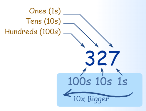 The ingenuity of the Indo-Arabic numeral system lies in its use of positional notation, also called place-value notation. In simple terms, positional notation refers to a system where each digit in a sequence gets multiplied by its place value. This sounds complicated at first and it’s a hard idea to wrap your head around, because this concept is so ingrained in us from an early age, it feels like we use positional notation sort of instinctively. To understand it better, let’s look at an example of positional notation in action: